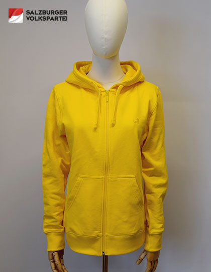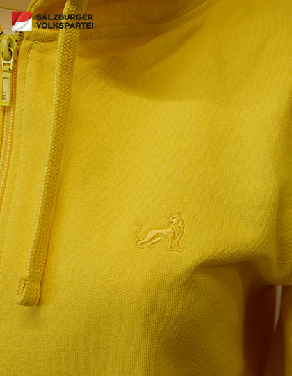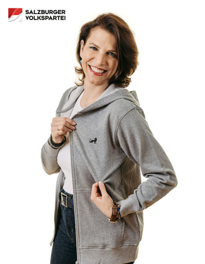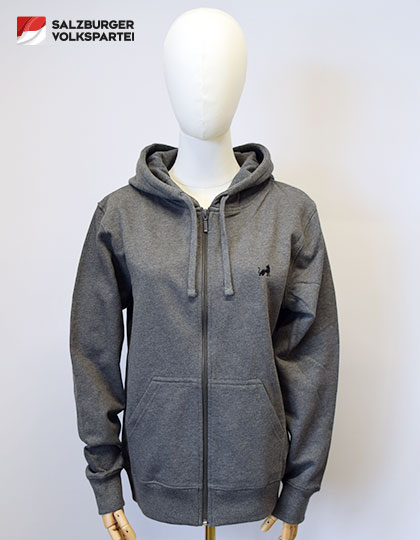 Diese hochwertige Bio-Kapuzenjacke für Damen verbindet nachhaltige Qualität mit einer klaren Botschaft. Auf der linken Brust ist die charakteristische Löwin, das persönliche Symbol von Landeshauptfrau Karoline Edtstadler, dezent und hochwertig gestickt.