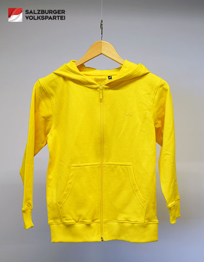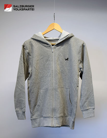 Diese hochwertige Bio-Kapuzenjacke für Kinder verbindet nachhaltige Qualität mit einer klaren Botschaft. Auf der linken Brust ist die charakteristische Löwin, das persönliche Symbol von Landeshauptfrau Karoline Edtstadler, dezent und hochwertig gestickt.
